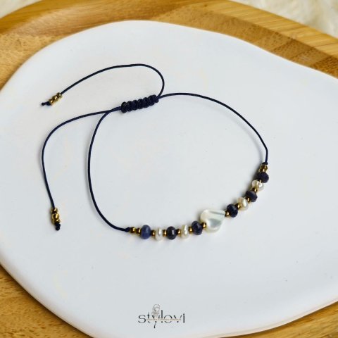 💙 szafir: 4x2 mm; 🦪 perła naturalna: 4x2 mm; 🤍 serce z masy perłowej AAA: 6 mm; ⚡ hematyt: 2 mm;
