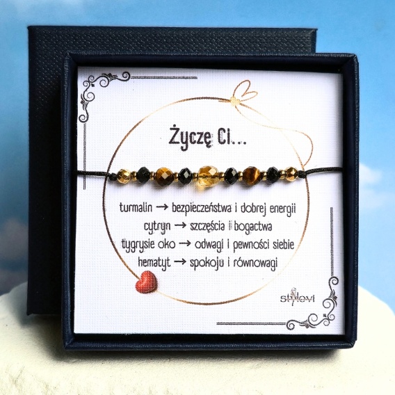 bransoletka ''Życzę Ci": bezpieczeństwa, bogactwa, odwagi, spokoju - turmalin, cytryn, tygrysie oko, hematyt