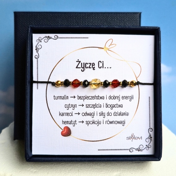 bransoletka ''Życzę Ci": bezpieczeństwa, bogactwa, siły do działania, spokoju - turmalin, cytryn, karneol, hematyt