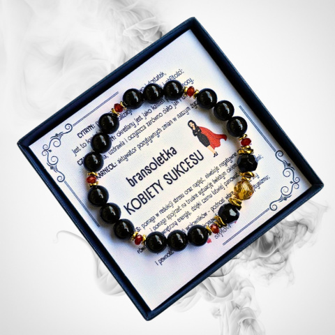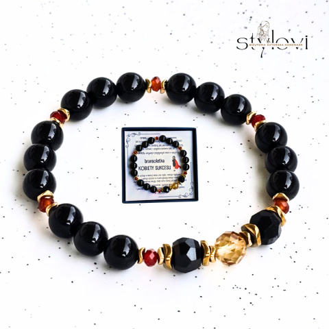 Kamienie użyte przy produkcji tej bransoletki mają szczególne znaczenie dla kobiet sukcesu. Czarny turmalin uważany jest za kamień mocy, który wzmacnia i chroni przed negatywnymi wpływami. Cytryn natomiast jest symbolem bogactwa i dostatku, wspierając w dążeniu do celów finansowych. Karneol jest doskonałym aktywatorem pozytywnych zmian w naszym życiu, a onyks pomaga w redukcji stresu oraz napięć.