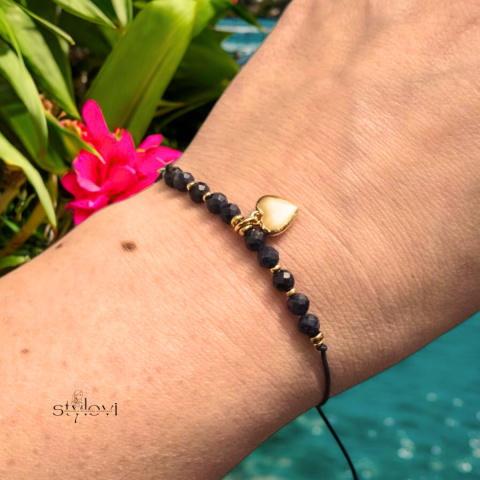 💙 szafir: 4,5 i 3,5 mm, ⚡ hematyt: 2 i 3 mm, 💛 serduszko z mosiądzu pozłacane 18K złotem: ok 10 mm;