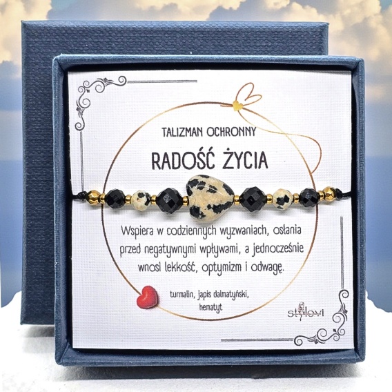 bransoletka TALIZMAN OCHRONNY - RADOŚĆ ŻYCIA turmalin, jaspis dalmatyński, hematyt