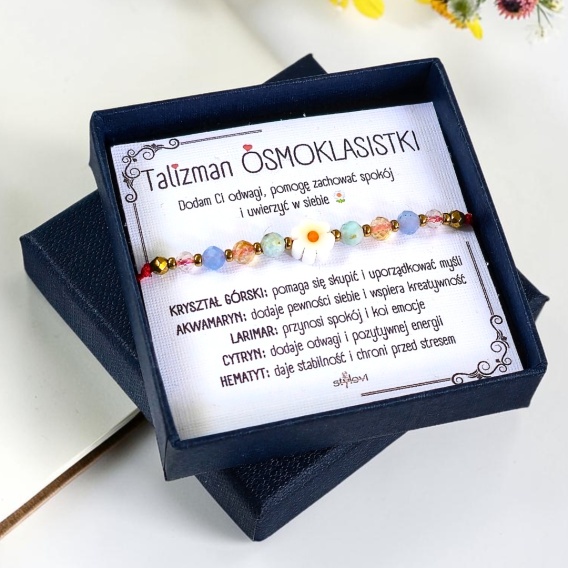 bransoletka TALIZMAN ÓSMOKLASISTKI: cytryn, akwamaryn, larimar, kryształ górski, turmalin, hematyt