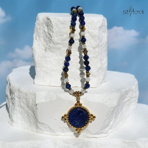 naszyjnik regulowany - 40 do 80 cm - GRECJA: lapis lazuli, kamień księżycowy, hematyt