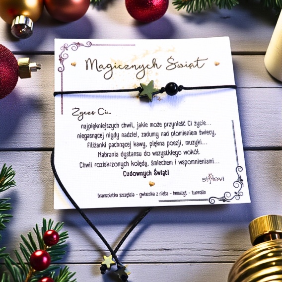 świąteczna bransoletka SZCZĘŚCIA OCHRONNA - talizman szczęścia czarny sznurek, turmalin, hematyt